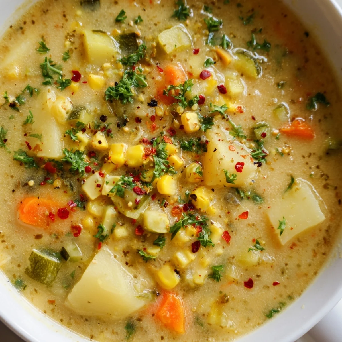 This comforting soup combines tender potatoes, sweet corn, and fresh zucchini in a rich, creamy broth. Aromatic vegetables like onion, garlic, carrots, and celery build depth, while smoked paprika and dried thyme add warmth. Ready in just 45 minutes, this nourishing bowl delivers both smooth and chunky textures for a satisfying meal.