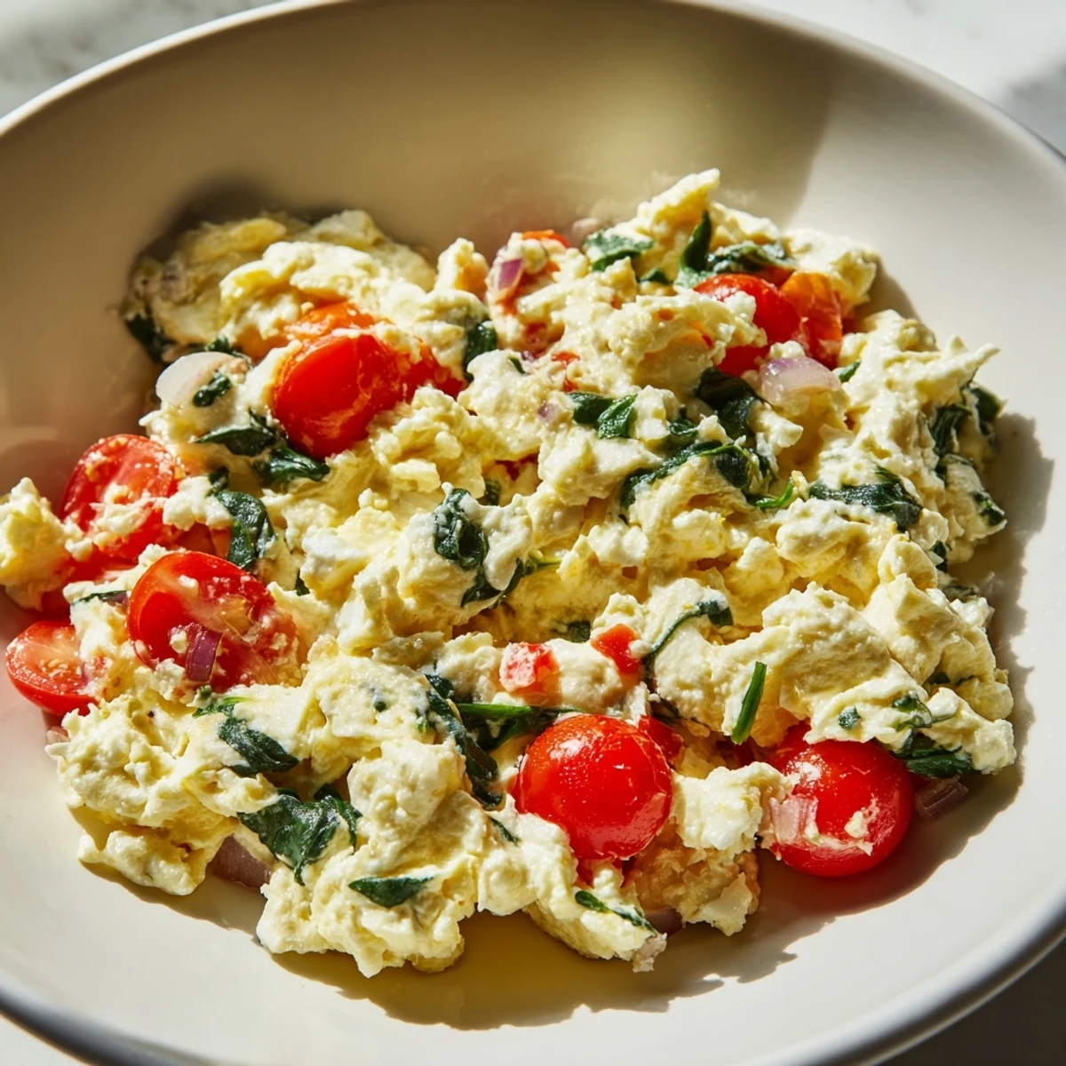 These versatile breakfast bowls combine fluffy scrambled eggs with cottage cheese for a protein boost, plus colorful vegetables like cherry tomatoes, spinach, and bell peppers. Each bowl delivers 31 grams of protein per serving while offering endless customization options.