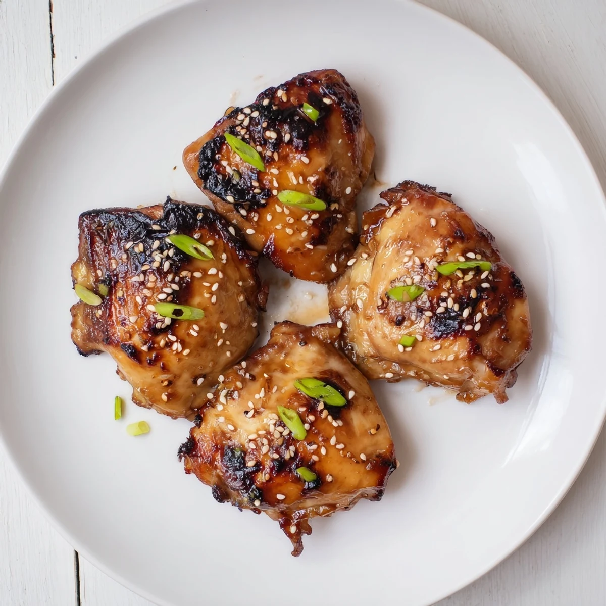 These Japanese BBQ chicken thighs are marinated in soy, mirin, sake, honey, brown sugar, grated ginger, garlic, sesame oil and rice vinegar for at least one hour. Grill over medium-high heat 6–8 minutes per side until 75°C/165°F, reserve and reduce the marinade in a saucepan, then brush on the thighs. Oven option: bake at 200°C/400°F for 20–25 minutes, basting halfway. Finish with toasted sesame and sliced scallions for bright aroma and texture.