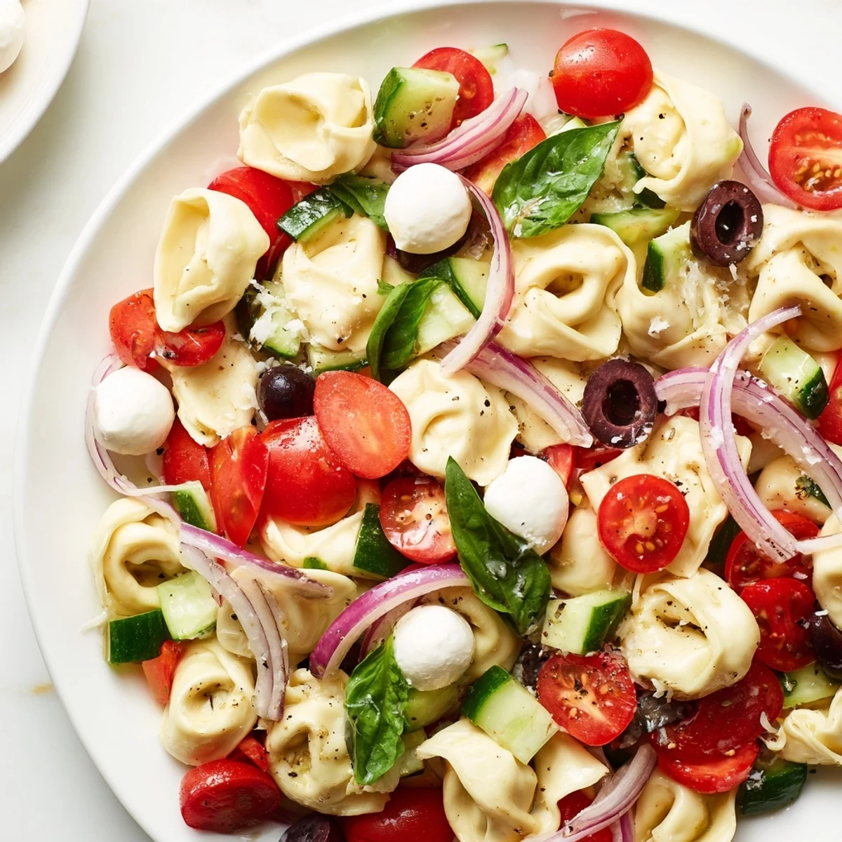 - Red bell pepper (1/2 cup, diced): Brings sweetness and gorgeous color contrast against the pale tortellini
